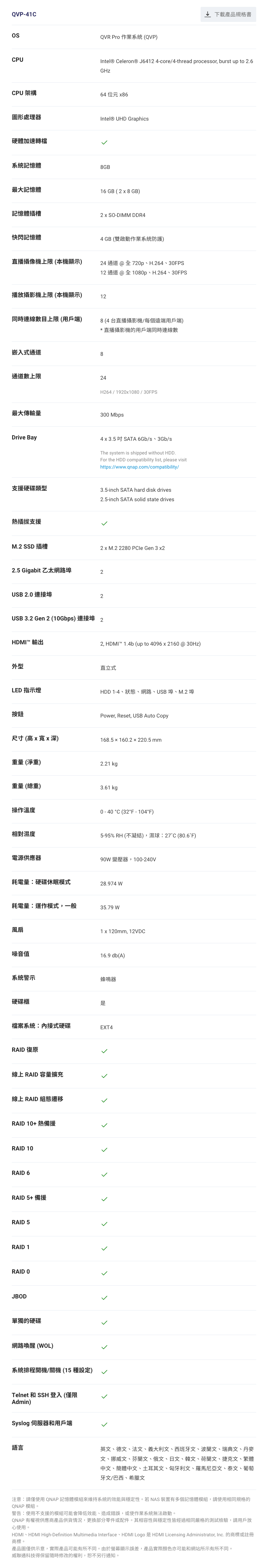 QNAP|QVP-41C|4-bay 高效能 NVR 安全監控伺服器,適合中小企業、SOHO 與家庭用戶使用|原裝行貨|免費送貨