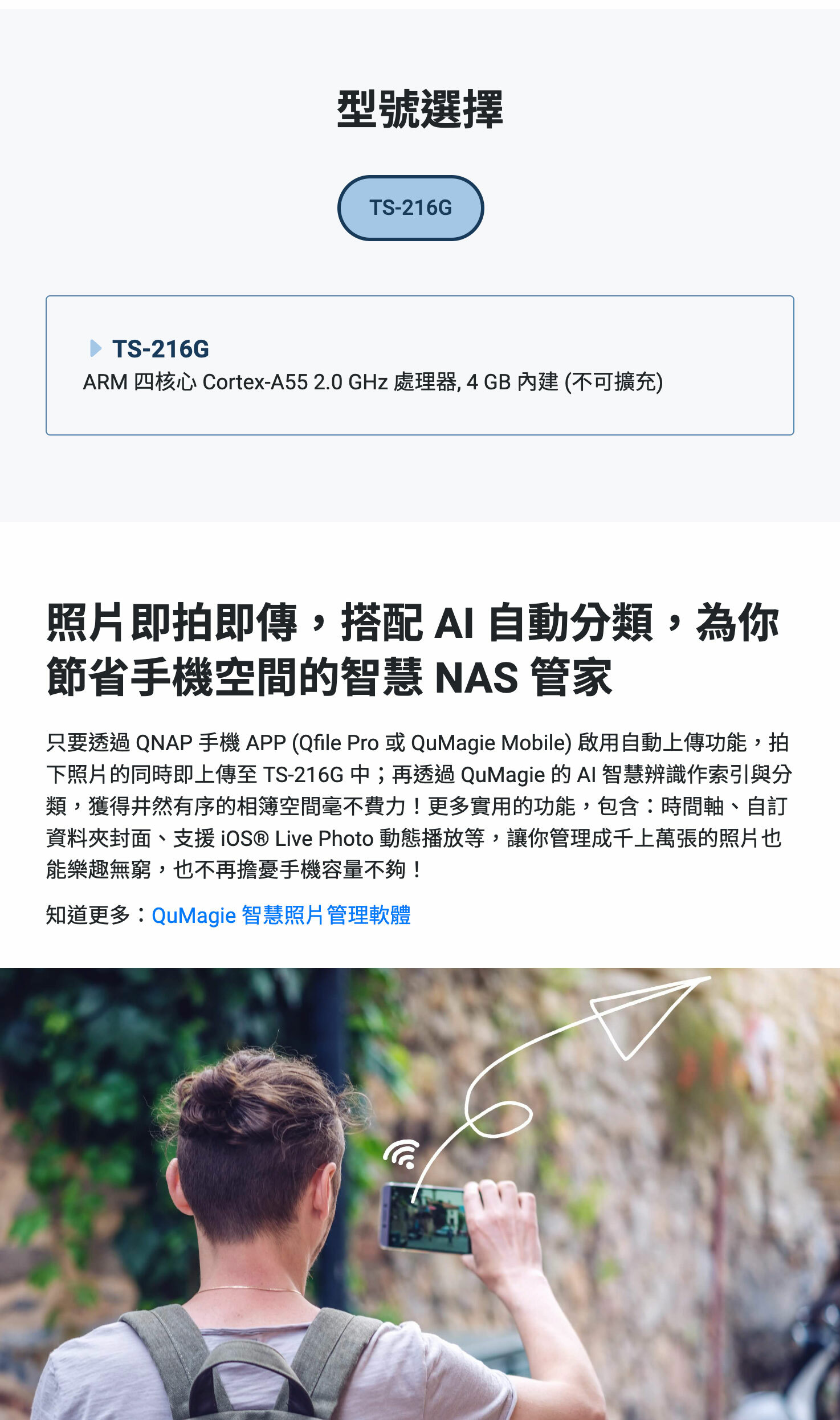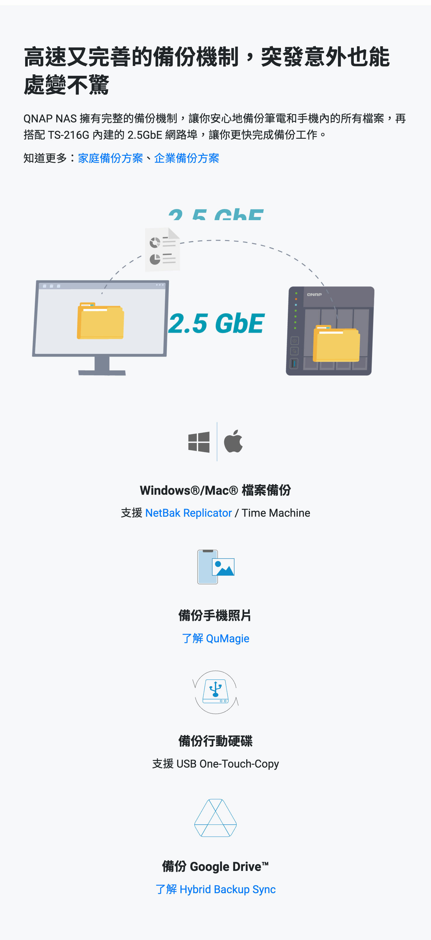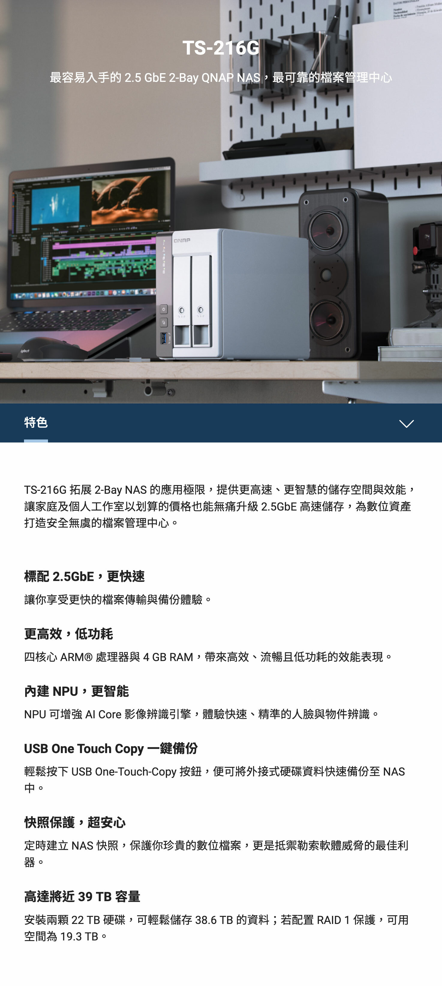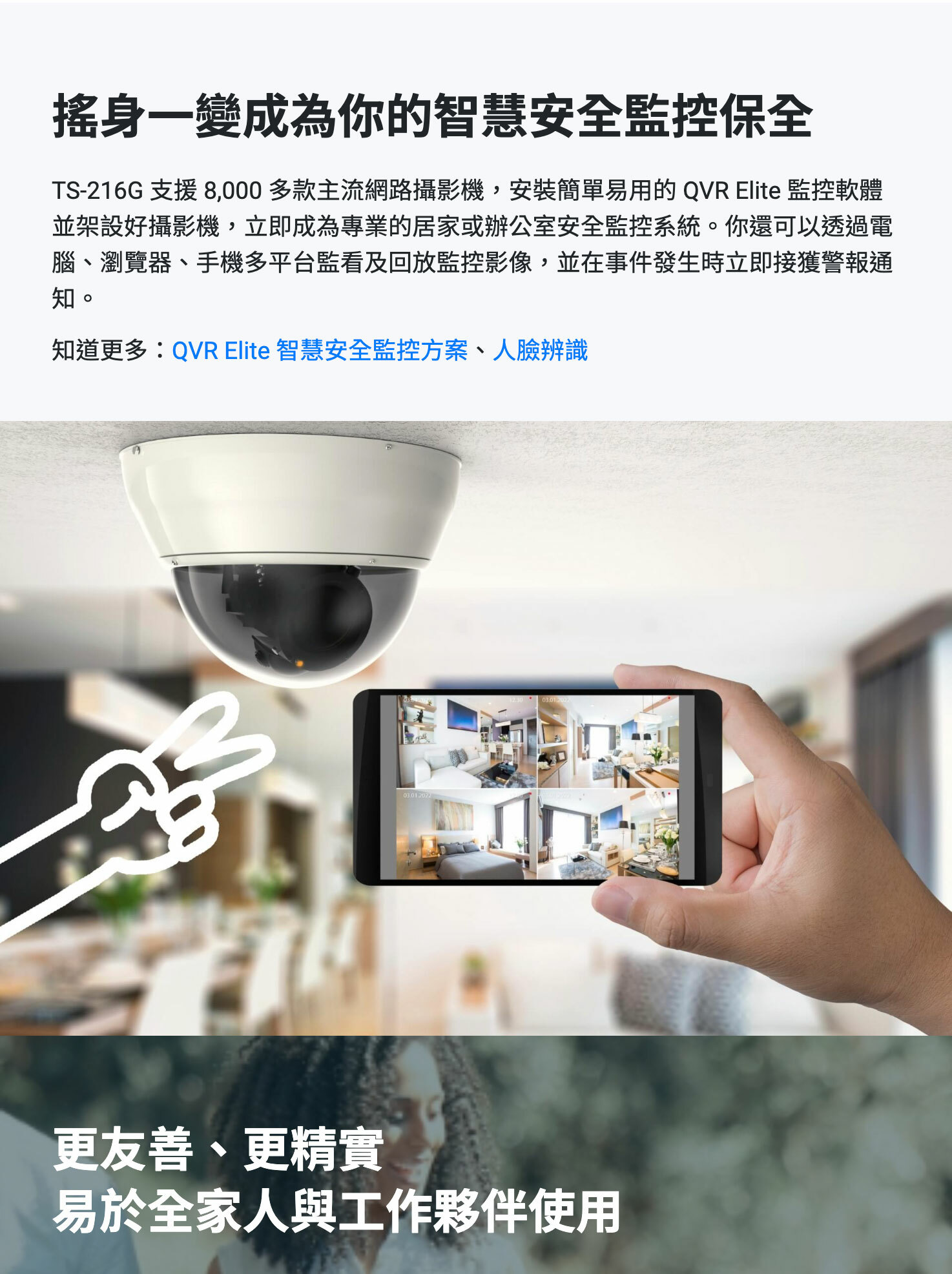 【 QNAP 】TS-216G|2-Bay|標配 2.5GbE,更快速|更高效,低功耗|內建 NPU,更智能|USB One Touch Copy 一鍵備份|快照保護,超安心|高達將近 39 TB 容量|家用 NAS|原裝行貨|免費送貨