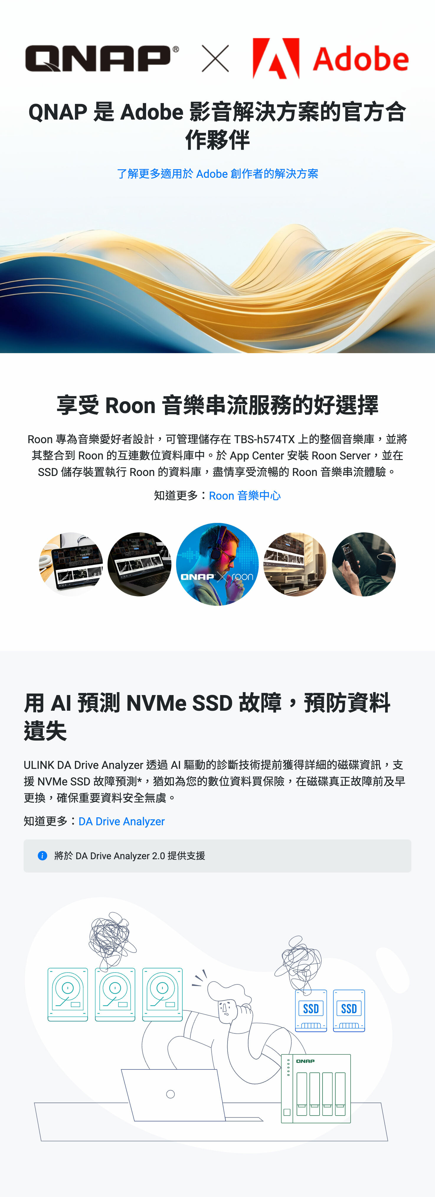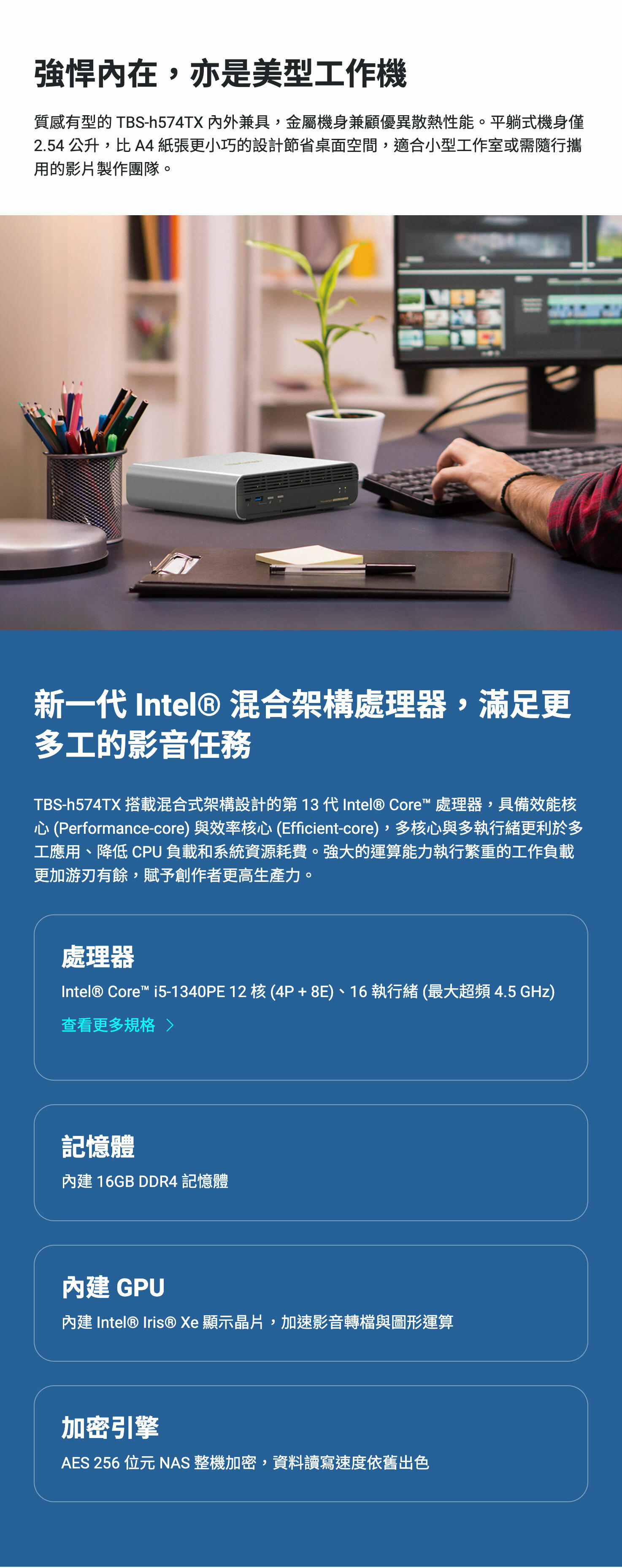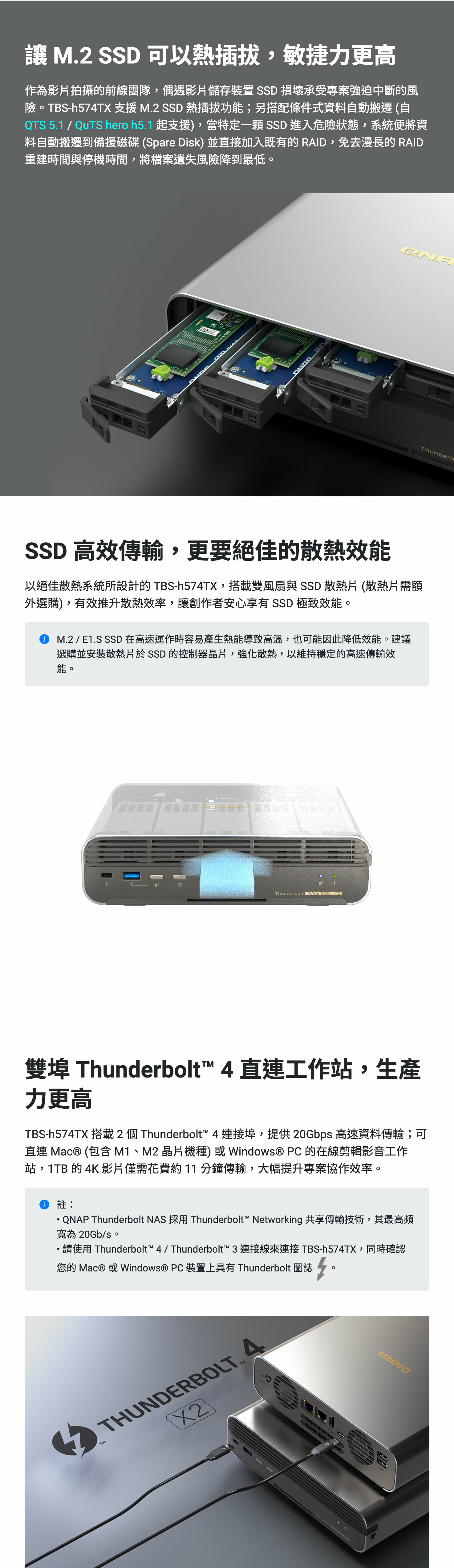 【 QNAP 】TBS-h574TX|Thunderbolt™ 4 全快閃 NASbook|綻放無限創意|RAW 檔傳輸|專案執行更敏捷|Thunderbolt™ 4 極速直連工作站|混合式架構處理器,更多工|標配 2.5GbE 與 10GbE|更快的多媒體素材匯入|全快閃 NAS|原裝行貨|免費送貨