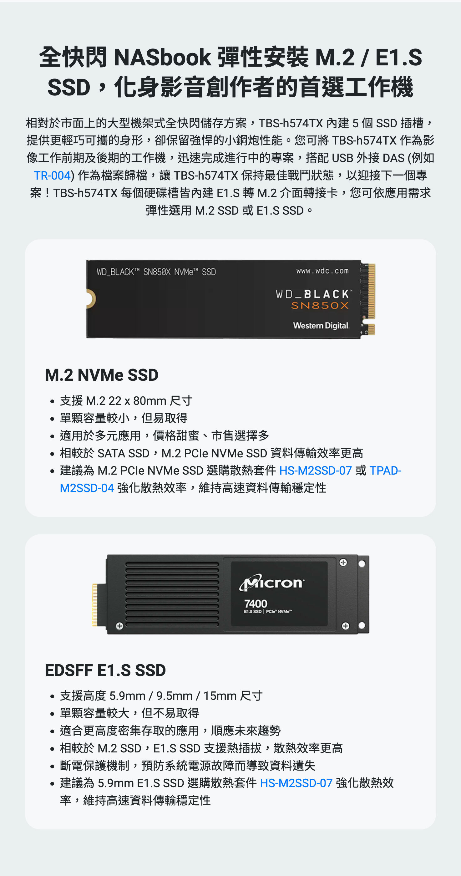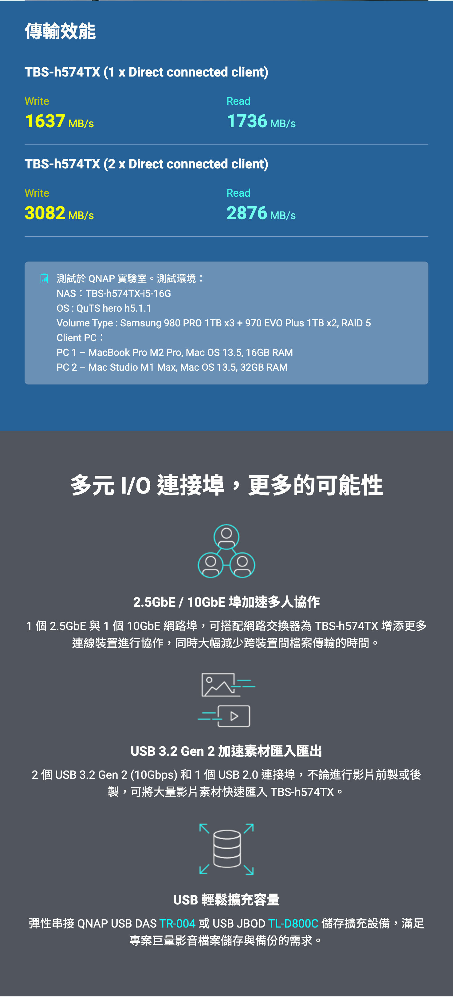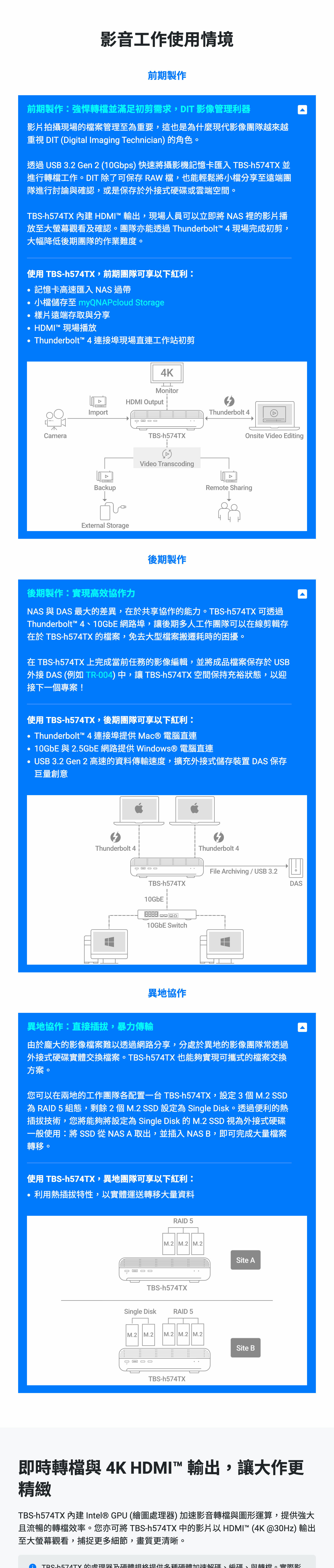 【 QNAP 】TBS-h574TX|Thunderbolt™ 4 全快閃 NASbook|綻放無限創意|RAW 檔傳輸|專案執行更敏捷|Thunderbolt™ 4 極速直連工作站|混合式架構處理器,更多工|標配 2.5GbE 與 10GbE|更快的多媒體素材匯入|全快閃 NAS|原裝行貨|免費送貨
